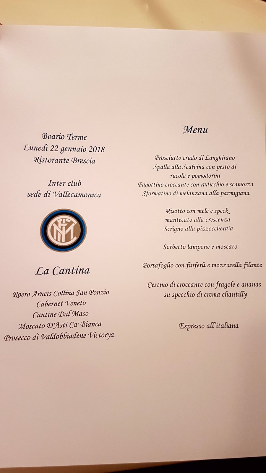 Lunedì 22 Gennaio si terrà la Cena Sociale nella nostra bellissima sede dell' Hotel Brescia a Boario Terme. Ritrovo ore 19:30 inizio cena ore 20:00. Sarà una serata all'insegna dell'amicizia in tinta nerazzurra. Oltre all'altissima qualità della cucina, curata nei minimi dettagli da Roberto, la serata sarà allietata dal swing e jazz dei bravissimi "Celia & the Bricks". Ricchissimi i premi in palio nella lotteria del dopo cena. Altre sorprese da scoprire....... partecipando!